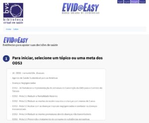 O ecossistema da BIREME inclui também o Evid@Easy, ferramenta de busca guiada de evidências. Seu objetivo é facilitar o acesso à informação científica qualificada por meio de trilhas temáticas pré-definidas, com base em estratégias de busca estruturadas.